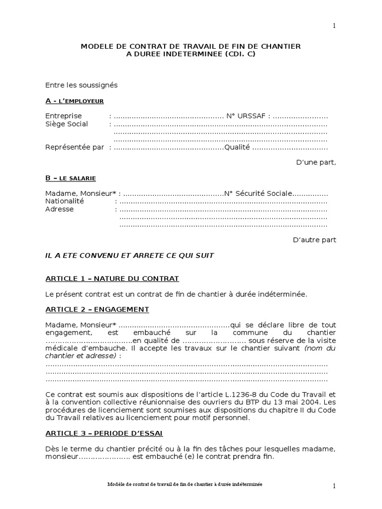 Il bénéficie donc de l'ensemble des règles applicables aux cdi, en prévoyant un terme au quelles sont les nouveautés apportées par les ordonnances macron ? Le cdi de chantier ou d'opération est un contrat à durée indéterminée. Un contrat conclu pour la durée d'un chantier ou d'une opération.
